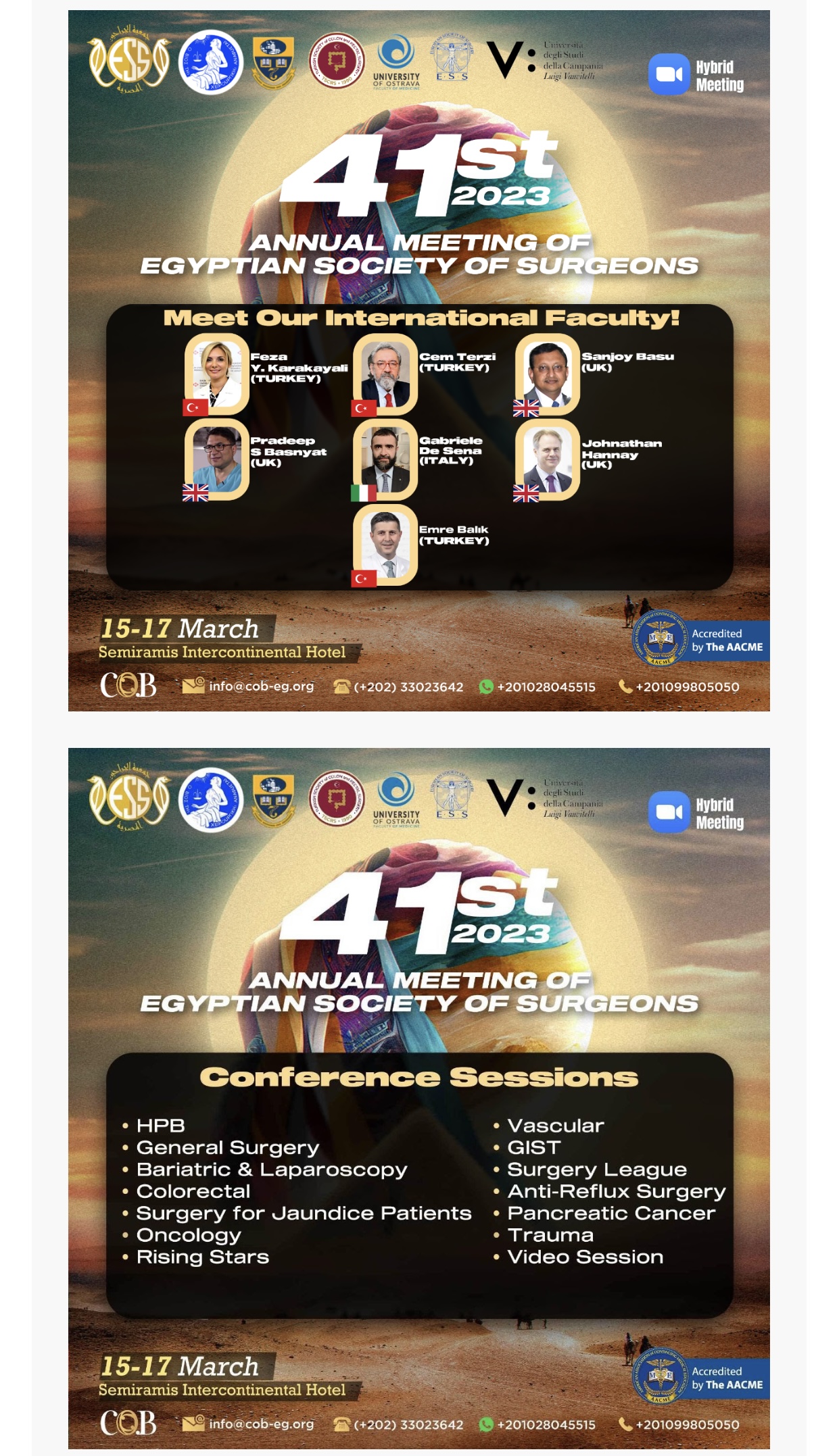 تم بفضل الله حضور المؤتمر واللقاء السنوي لجمعية الجراحين النصرية خلال ثلاثة أيام من ١٥-١٧ مارس ٢٠٢٣، بحضور خبراء وجراحين من داخل وخارج مصر، وتم مناقشة الكثير من حالات الجراحة العامة المتنوعة في كل فروع الجراحة العامة.