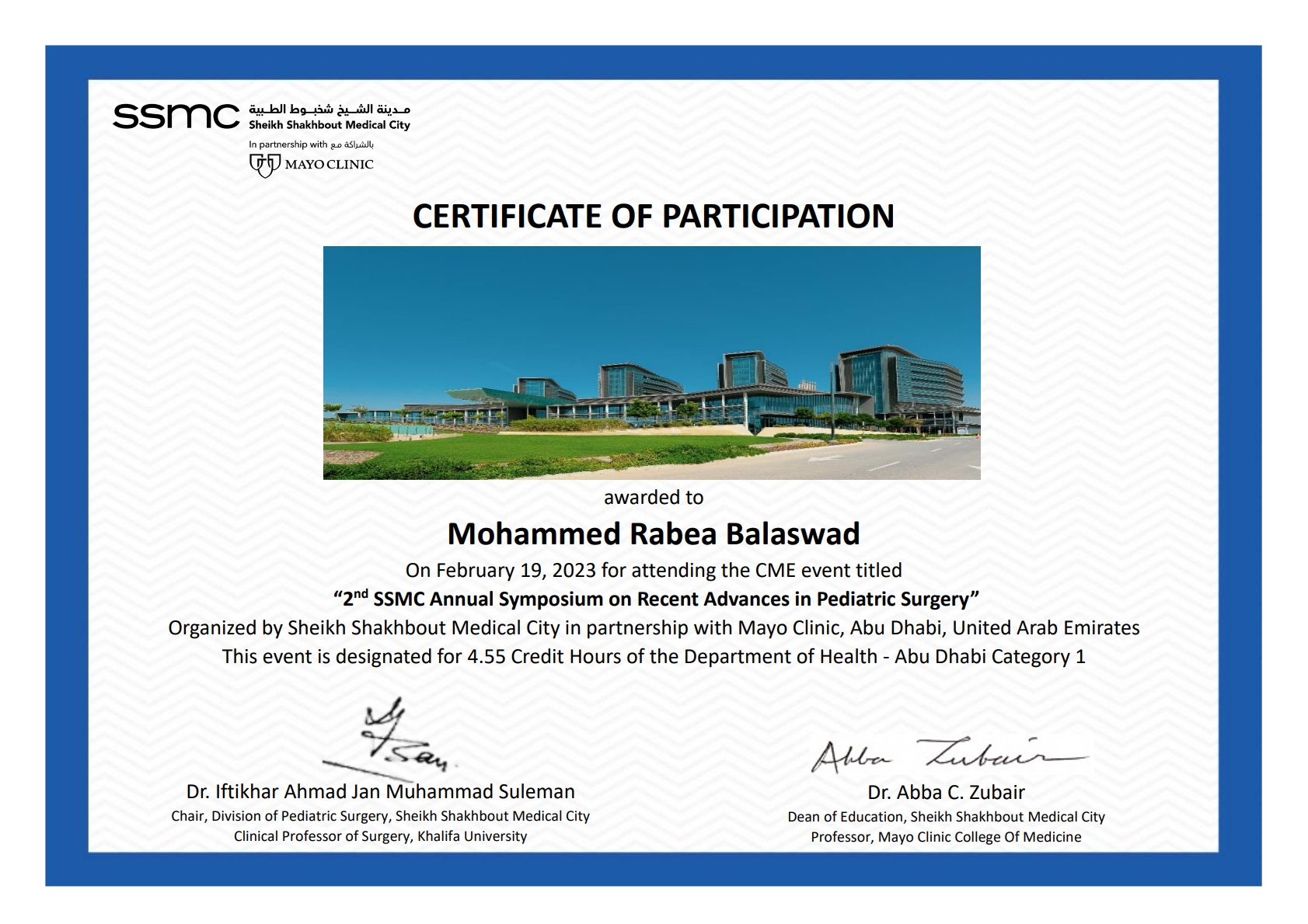 المشاركة في ندوة علمية بمدينة الشيخ شخبوط الطبية - الامارات، عبر الانترنت