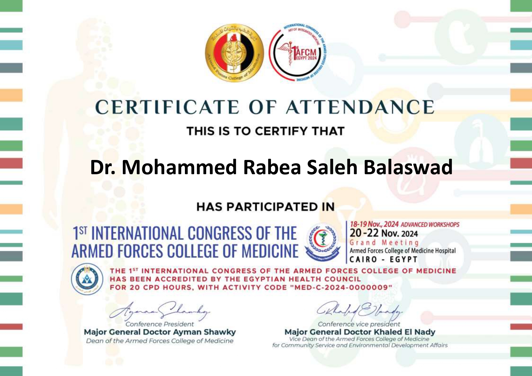 المشاركة في المؤتمر الدولي الأول لكلية الطب بالقوات المسلحة
