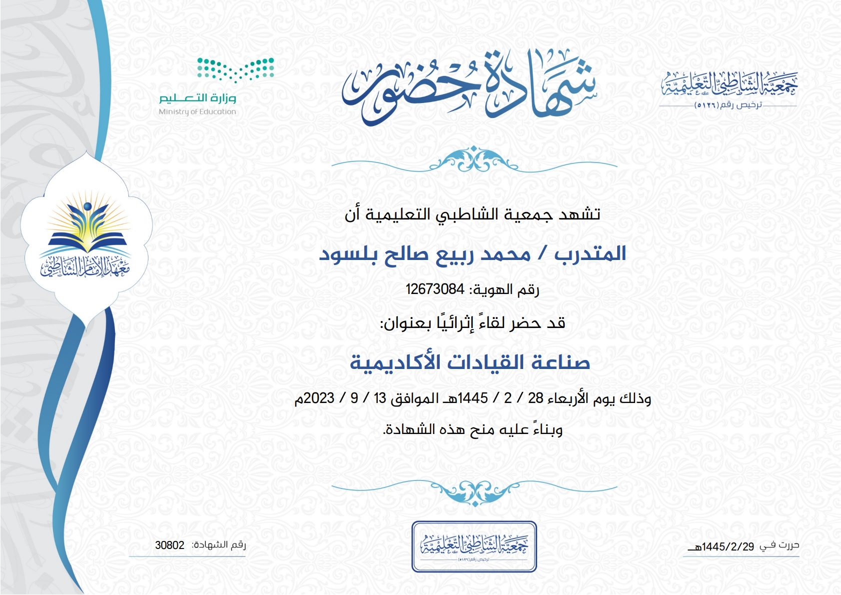 حضور لقاء علمي إثرائي بعنوان صناعة القيادات الأكاديمية