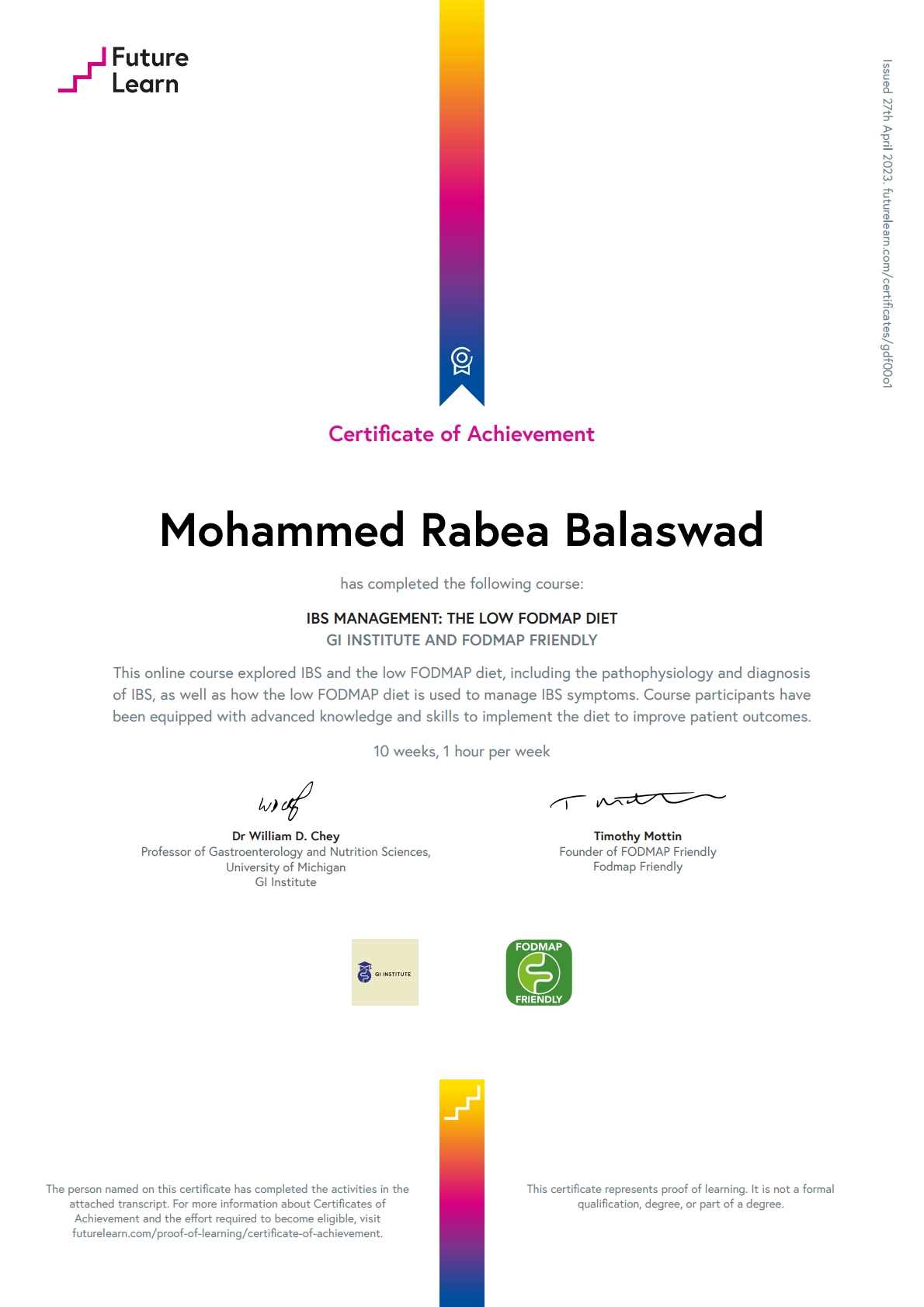إتمام دورة متقدمة في علم التغذية العلاجية