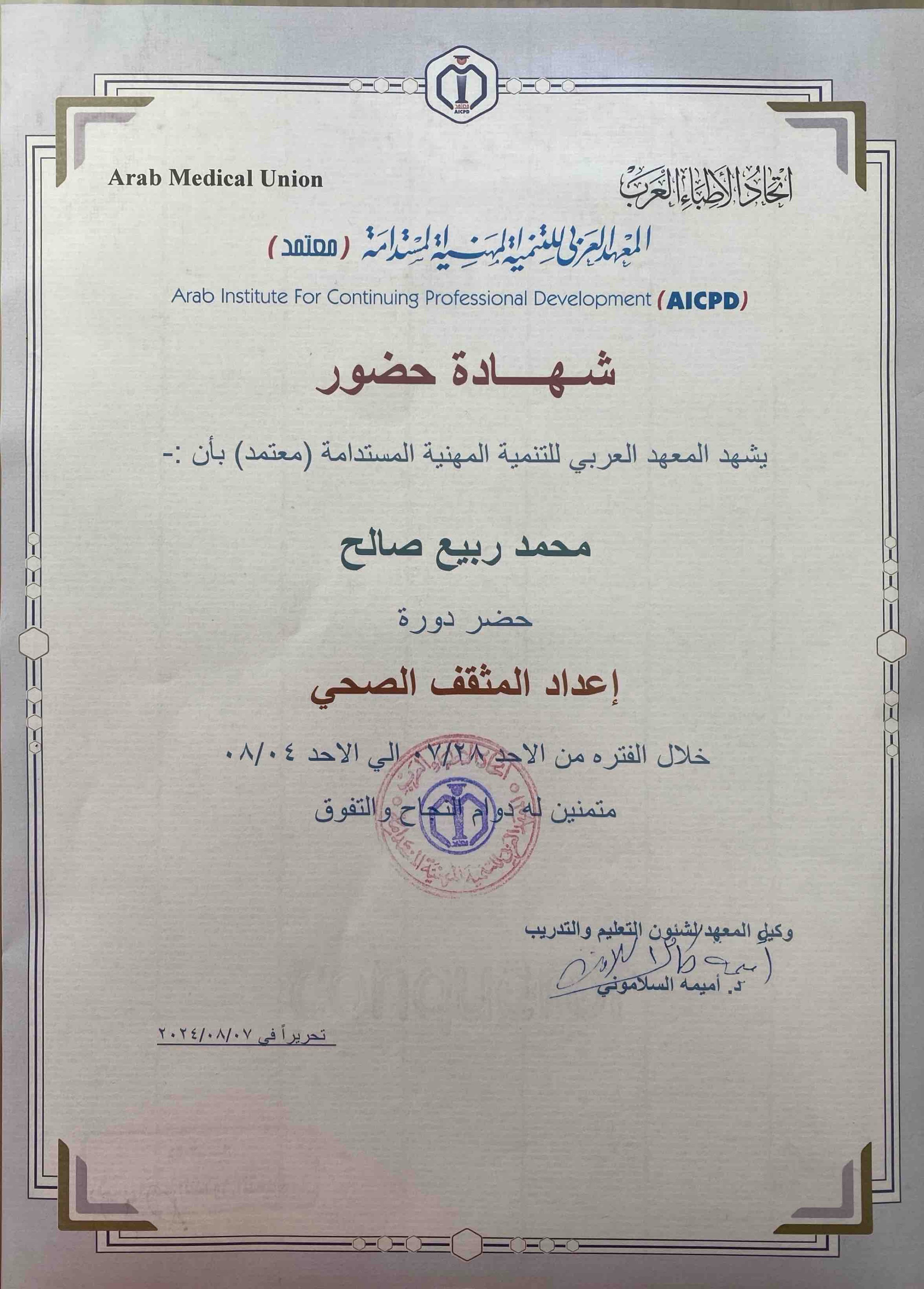 إتمام الدورة التدريبية لمقدّم دعم الحياة القلبي الوعائي المتقدم ACLS