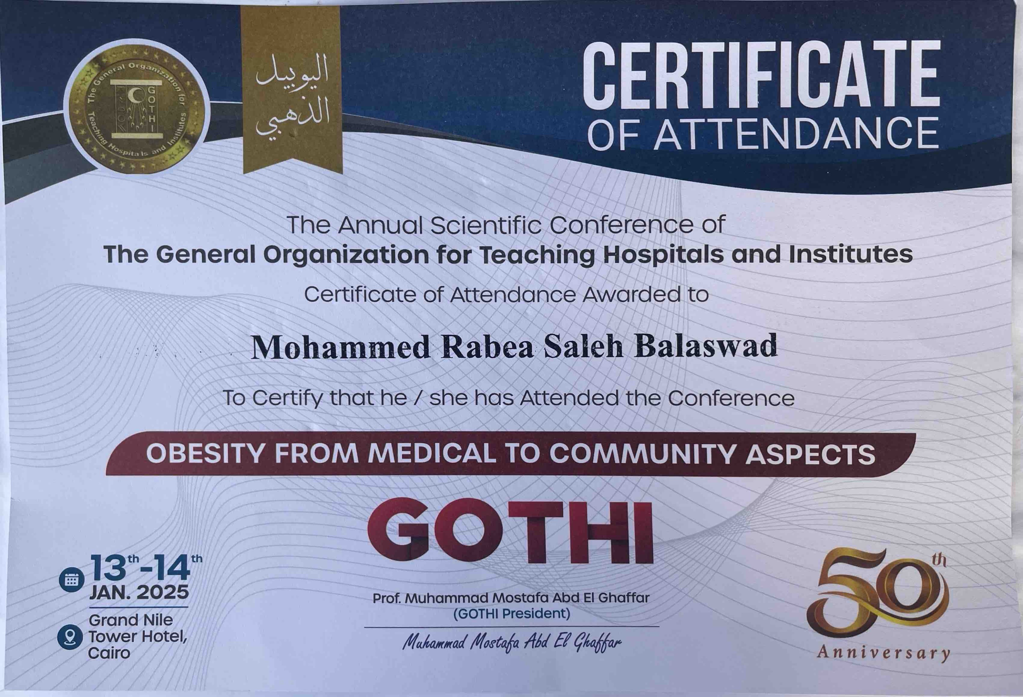 حضور المؤتمر السنوي لجمعية الجراحين المصرية